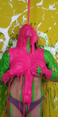 Messymissmia got dunked by Hogi in a huge slime dunk tank